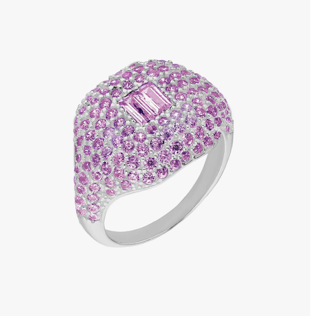 This stunning micropave pinky ring looks great when worn alone and even better when stacked with multiple rings.